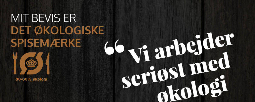 Vi er stolte af at kunne præsentere det økologiske spisemærke i bronze. Det betyder, at 30-60 % af de råvarer, vi bruger i vores køkken, er økologiske. For os er det en naturlig del af at levere kvalitet med omtanke – både for vores gæster og for miljøet.